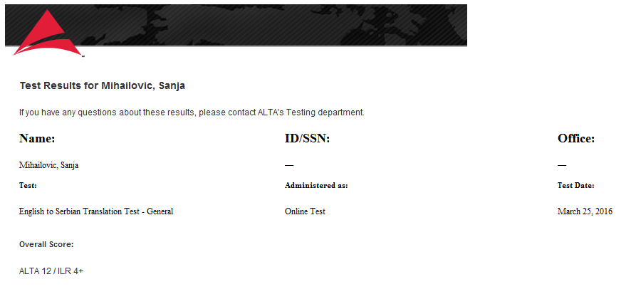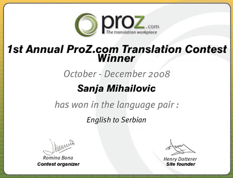 ▪ 1st annual translation contest winner in English > Serbian (2008)